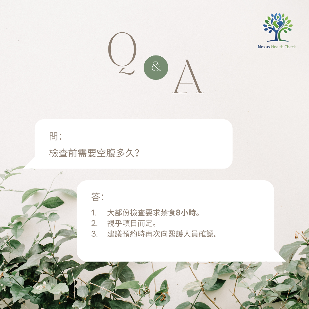 大部分空腹檢查要求禁食8小時,但不同項目的規定略有差異,建議您預約時再次向醫護人員確認。